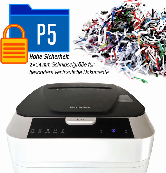 LMG Autofeed Aktenvernichter, Manuell 10 und Auto 180 Blatt, P5, Kreuzschnitt