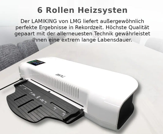 LMG LAMIKING Laminiergerät DIN A3 bis 2x 250 mic, keine Aufwärmzeit, 6 Rollen, 1100 mm/Minute