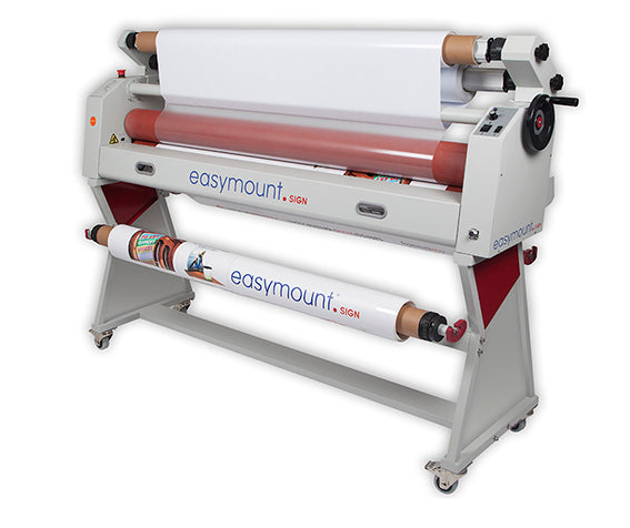 Rollenlaminator: Kaltkaschierung bis zu einer Breite von 1600 mm (>A0) und einer max. Montagedurchlaufstärke von 25 mm, Rollen-Kerndurchmesser: 76 mm, Druckeinstellung stufenlos variabel (einstellbare Rollendistanz), 2 kalte Gummiwalzen (extra große Walzen für gleichmäßigen Druck), selbsthaftende Rollenaufnahmen, variable Geschwindigkeitsregelung: 5 m / Min., keine Aufheizzeit, Einradsteuerung, Rücklauffunktion, STOPP-Fotoaugen-Lichtschranke, NOT-AUS-Schalter, Staubschutz-Abdeckung, inkl. Fußpedal, inkl. Abwickelstation, inkl. Stand (mit Rollen) und integrierte Aufwickelvorrichtung für das fertige Produkt, für das Arbeiten von "Rolle zu Rolle"!